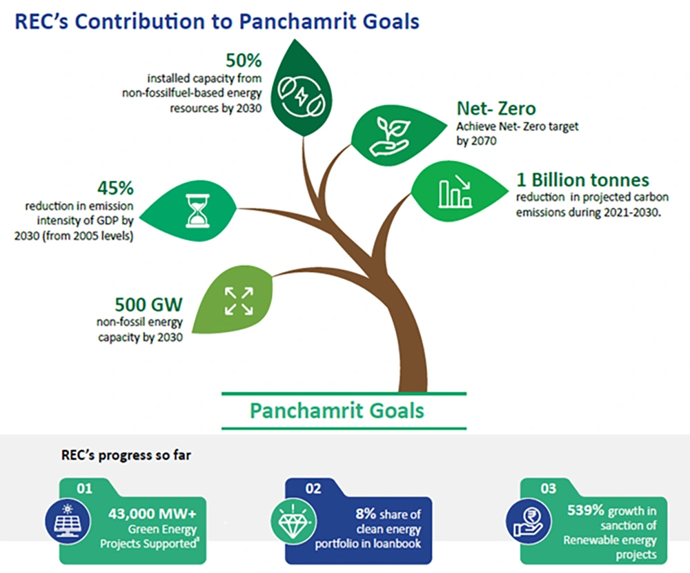 REC Limited, a Maharatna Central Public Sector Enterprise under the Ministry of Power, has demonstrated a strong commitment to environmental sustainability through various initiatives: