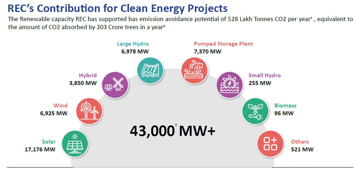 - REC’s Green Finance Framework supports solar, wind, hydropower, electric vehicles, energy efficiency, and pollution control projects.